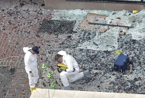 Two bombs explode near the finish line of the Boston Marathon. Three people are killed, and at least 260 are injured.