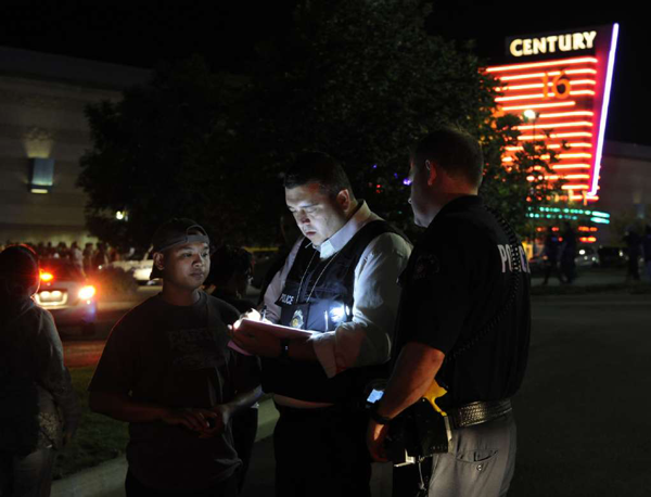 James Holmes, 24, is taken into custody in the parking lot outside the Century 16 movie theater after a post-midnight attack in Aurora, Colo. Holmes allegedly entered the theater through an exit door about half an hour into the local premiere of “The Dark Knight Rises.” He faces charges of of killing 12 people and injuring 58 others.