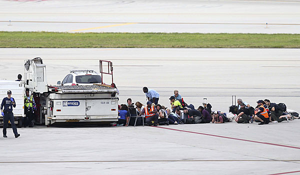 After taking a flight to Fort Lauderdale-Hollywood International Airport in Florida, a man retrieves a gun from his luggage in baggage claim, loads it and opens fire, killing five people near a baggage carousel and wounding six others. Dozens more are injured in the ensuing panic.