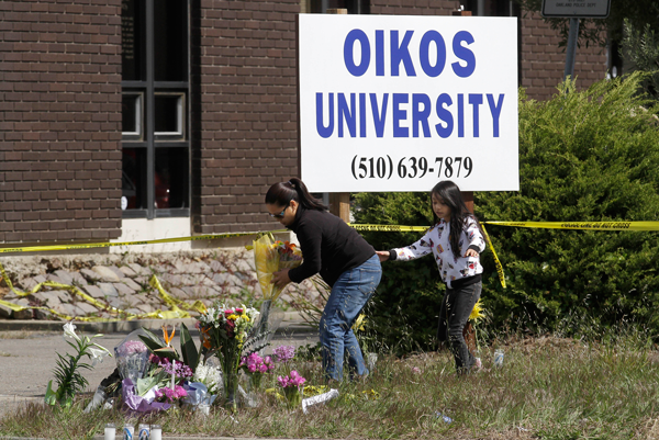 One L. Goh, 43, a former student at a Oikos University, a small Christian college, allegedly opens fire in the middle of a classroom leaving seven people dead and three wounded.