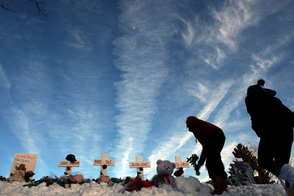 A gunman forces his way into Sandy Hook Elementary School in Newtown, Conn. and shoots and kills 20 first graders and six adults. The shooter, Adam Lanza, 20, kills himself at the scene. Lanza also killed his mother at the home they shared, prior to his shooting rampage. In emotional remarks from the White House, President Obama wiped away tears. “Our hearts are broken today,” the president said.