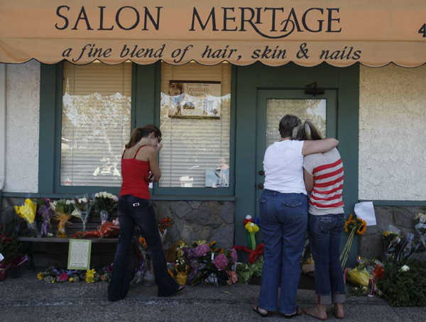 Radcliffe Haughton, a 45-year-old former Marine, walks into the Azana Salon and Spa where his estranged wife works and shoots and kills her and two other women, wounding four others. Witnesses say Haughton’s wife, Zina, calmly tried to protect coworkers and customers before she was killed. She had recently sought a restraining order saying her husband had threatened to throw acid in her face and set her on fire with gasoline. Haughton was found dead inside the salon of a self-inflicted gunshot.