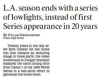 On the eve of Game 1 of the NLCS against the Phillies, Frank and Jamie McCourt announce that they are separating after nearly 30 years of marriage. No reason is given for the separation. The announcement overshadows the fact that the Dodgers are playing in the NLCS in consecutive seasons for the first time since 1977-78.
