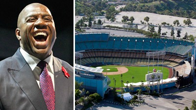 A group led by Lakers legend Magic Johnson agrees to pay $2 billion for the Dodgers, a record price for a sports franchise if the sale is approved. In addition, owner Frank McCourt and “certain affiliates of the purchasers” would buy the land surrounding Dodger Stadium for $150 million.