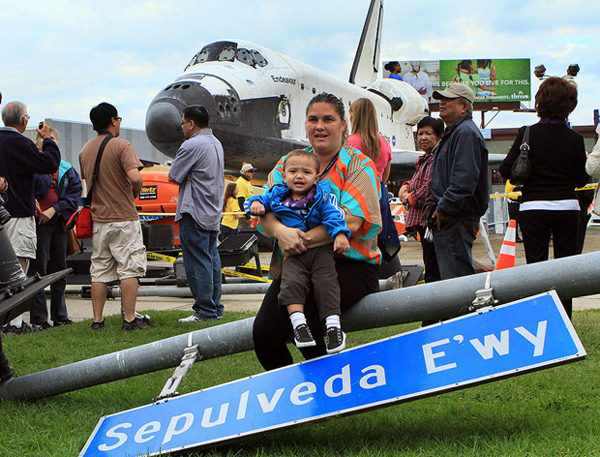 A stir went up among the crowd gathered in Westchester as the shuttle crept from its temporary parking space to resume its journey toward the California Science Center.