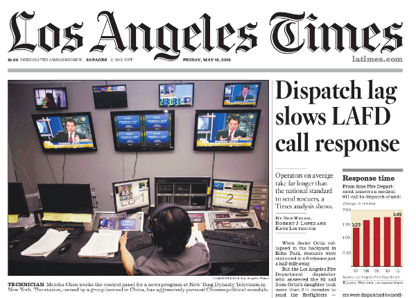 A Times analysis of the department’s database found that in the more than 250,000 medical dispatches in 2011, dispatchers took 1 minute and 45 seconds on average, 75% longer than the national standard.