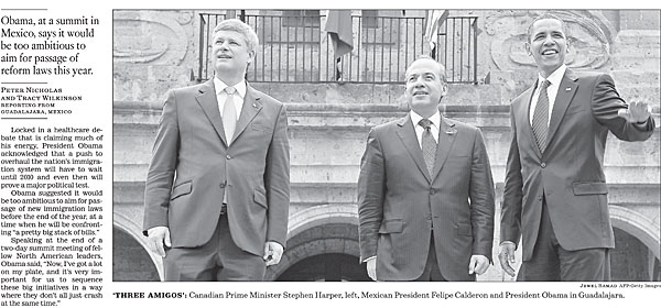 Locked in a healthcare debate that is claiming much of his energy, President Obama acknowledges that a push to overhaul the nation’s immigration system will have to wait until 2010 and even then will prove a major political test.