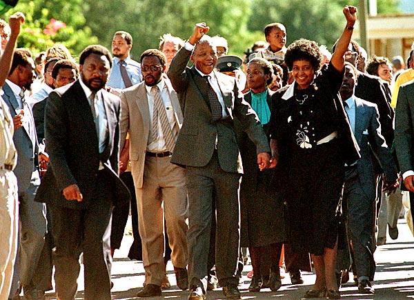 Mandela is released after 27 years in prison to throngs of supporters. Read Mandela’s address to a rally in Cape Town on his release from prison.