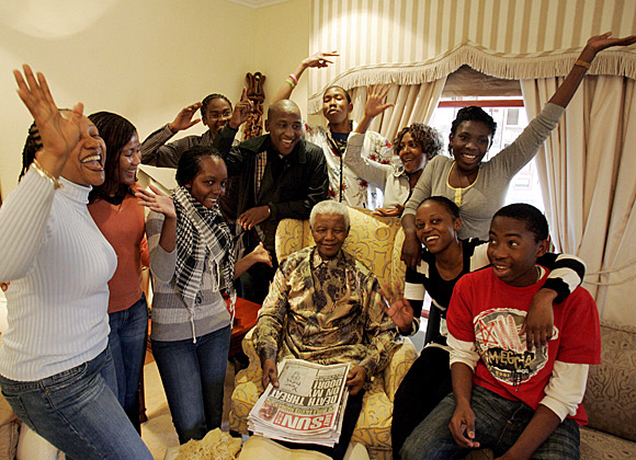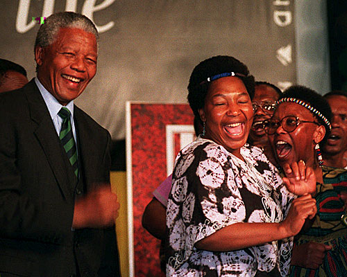 Mandela, 75, declares victory in South Africa’s first all-race election on behalf of his African National Congress party. In an emotional speech before an ecstatic crowd, the silver-haired leader of the African National Congress calls the success of his political and racial revolution “a joyous night for the human spirit” and urges his still-stunned country to “celebrate the birth of democracy.” A week later, Parliament unanimously elects him president.