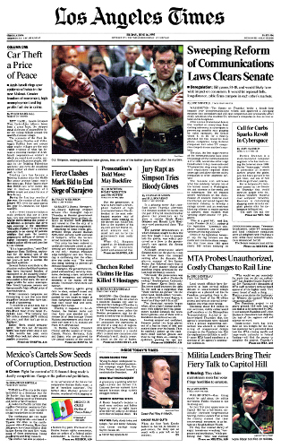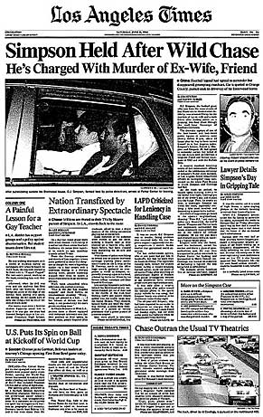 Simpson proclaims that he is “absolutely, 100% not guilty.” Simpson had been arraigned on June 20 in Municipal Court, where his preliminary hearing was held. (The Municipal Court and Superior Court systems were merged in 2000). Under the court system at that time, defendants who were ordered to stand trial on serious charges in Municipal Court had to be arraigned again in Superior Court, where the trial was held.