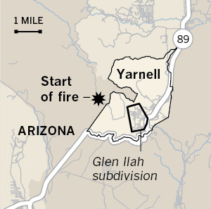 Sources: GeoMac, InciWeb, Arizona State Forestry Division, Census Bureau, USGS, BLM, National Weather Service, Times reporting
